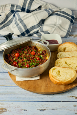To finish, grated cheese is sprinkled on top, melting over the eggs and sauce to create an extra layer of creaminess and flavor. This dish is an ideal option for breakfast, lunch, or dinner—satisfying and full of flavor.