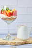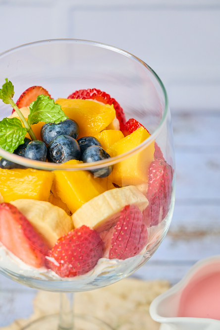 Este Parfait es la elección perfecta para un desayuno, un postre refrescante o simplemente para darte un capricho. Ordena ahora y disfruta de la frescura en cada cucharada de nuestro Parfait con Granola, Yogurt, Crema y Fruta Fresca Picada.